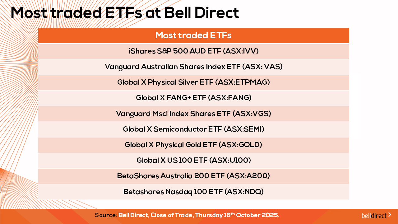 And the most traded ETFs were led by iShares S&P 500 AUD ETF (ASX:IVV), Vanguard Australian Shares Index ETF (ASX:VAS) and Global X Physical Silver ETF (ASX:ETPMAG).